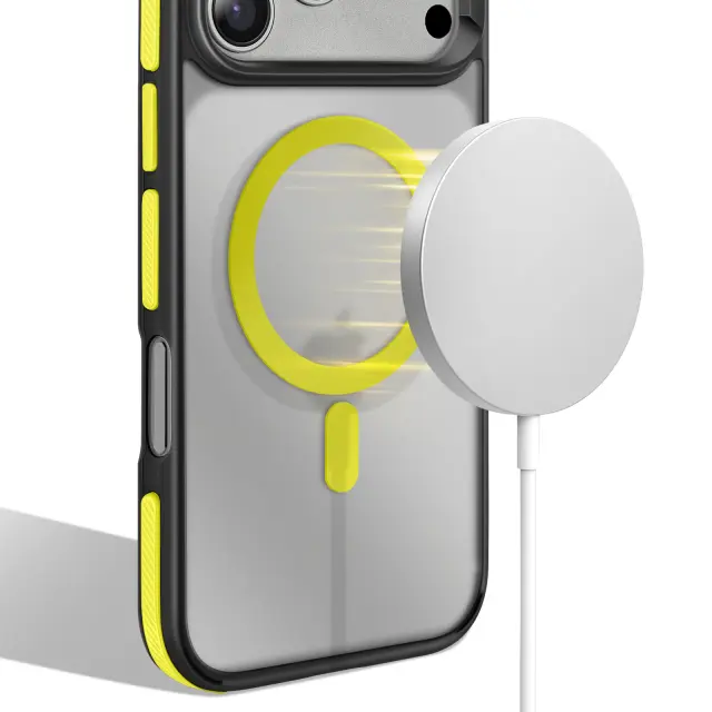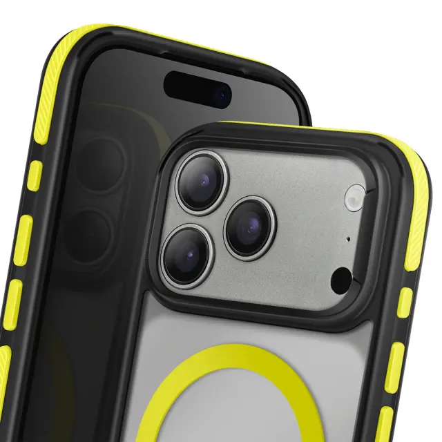 Ojačani vogali s tehnologijo za blaženje udarcev učinkovito ščitijo vaš iPhone 17 Pro Max v primeru nenamernega padca. Vgrajen magnetni obroč zagotavlja popolno združljivost s polnilniki in dodatki MagSafe za hitro in priročno uporabo. Teksturirani stranski ročaji zagotavljajo trdno in udobno prileganje ter zmanjšujejo tveganje zdrsa med vsakodnevno uporabo.. Polprosojna trda hrbtna stran z matiranim zaključkom proti praskam, ki združuje sodoben slog in dolgotrajno odpornost proti praskam..