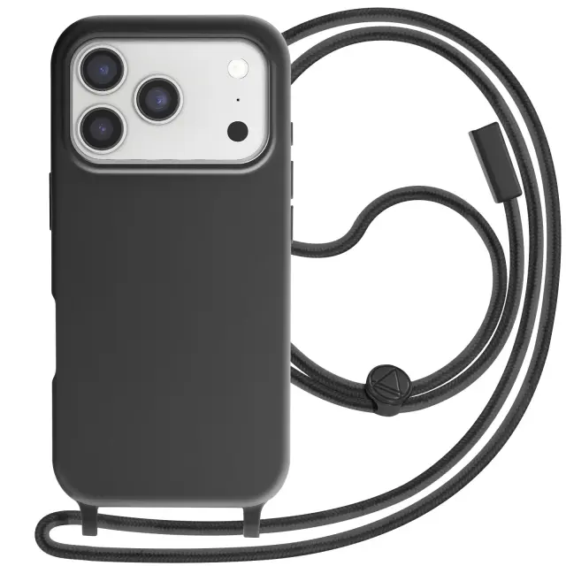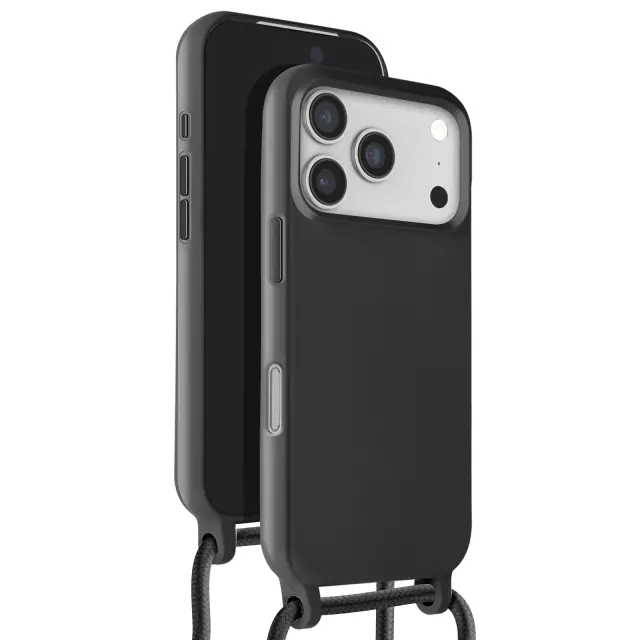 Ovitek za iPhone 17 Pro Max Soft Touch z vrvico za okoli vratu, Črna