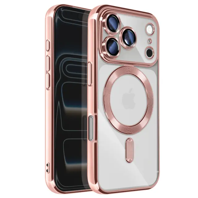 Ovitek za iPhone 17 Pro Max, združljiv z MagSafe, s kromiranim robom, Roza