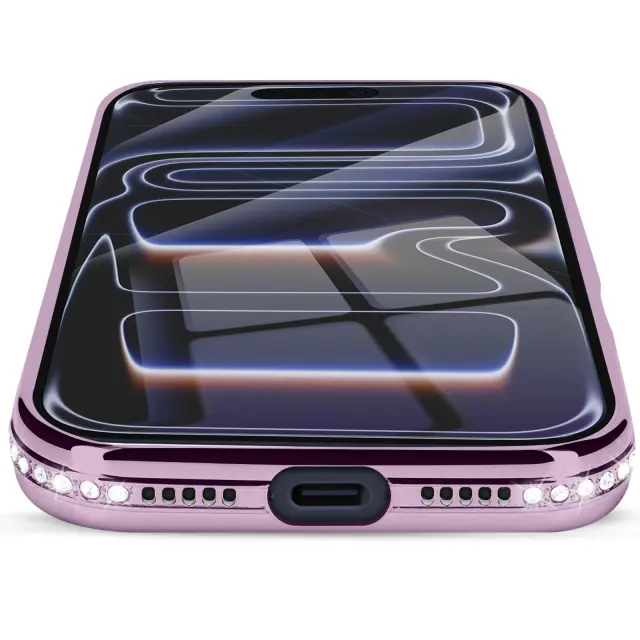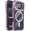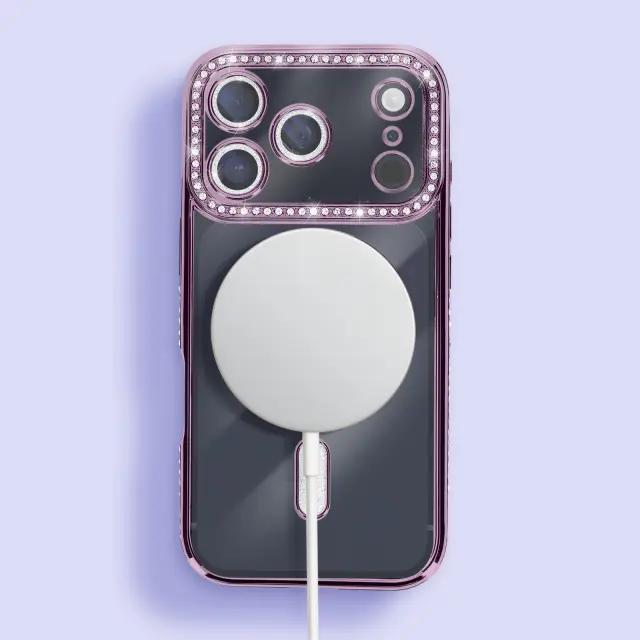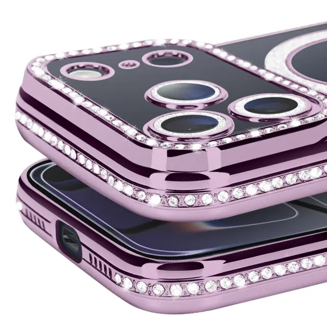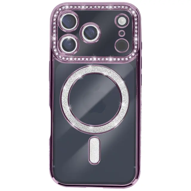 Ovitek za iPhone 17 Pro Max, združljiv z MagSafe, z okrasnim obrisom iz strasa, Vijolična