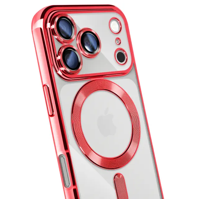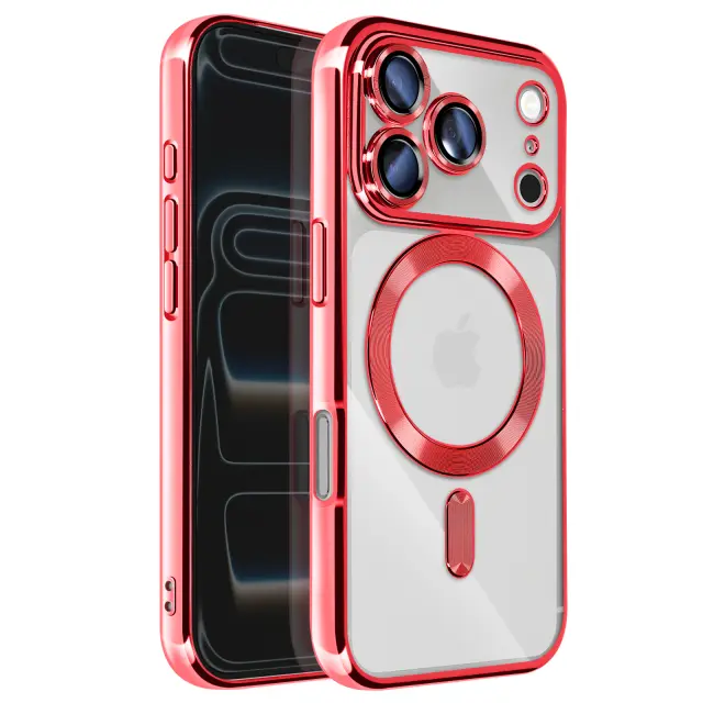 Ovitek za iPhone 17 Pro Max, združljiv z MagSafe, s kromiranim robom, Rdeča