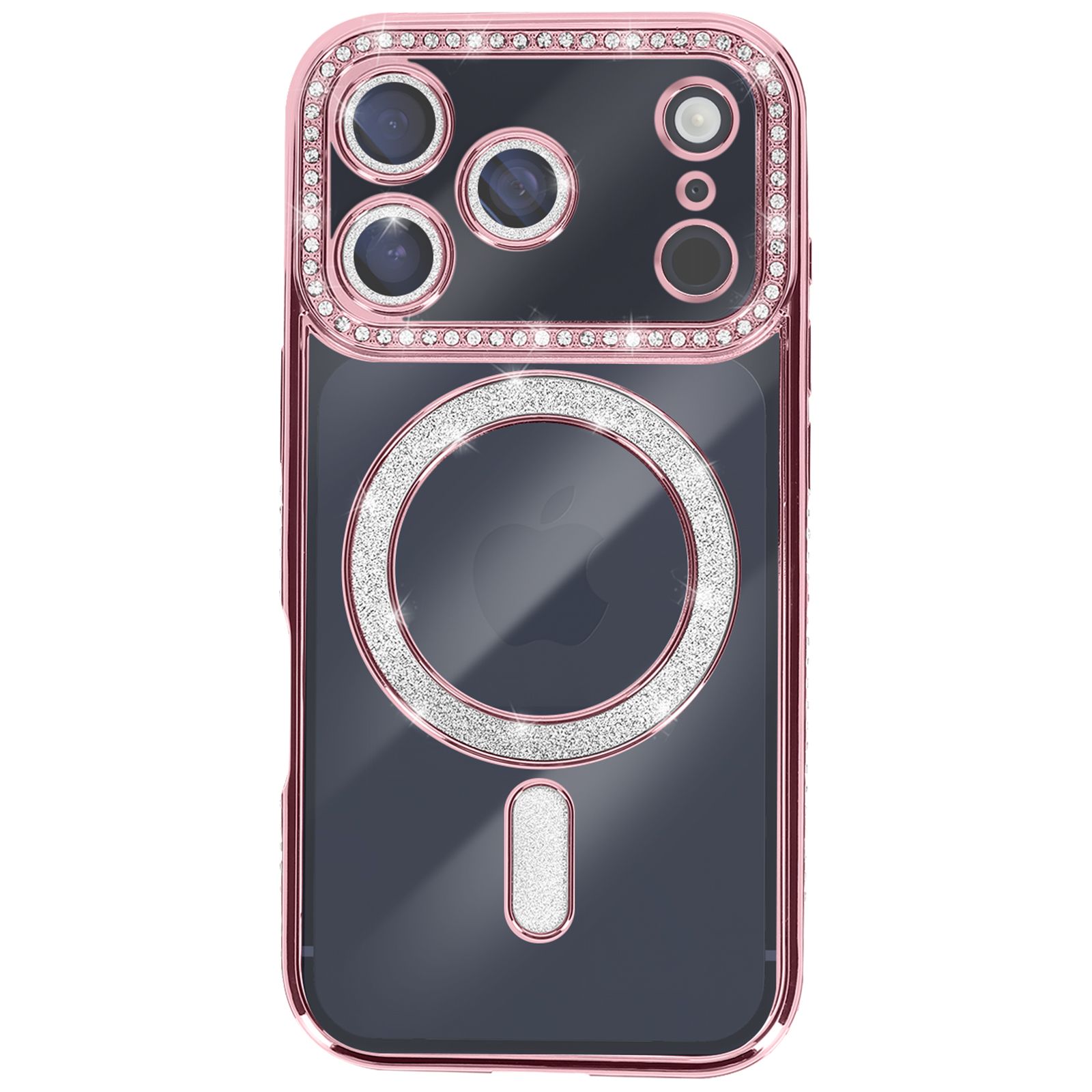 Ovitek za iPhone 17 Pro Max, združljiv z MagSafe, z okrasnim obrisom iz strasa, Šampanjec roza
