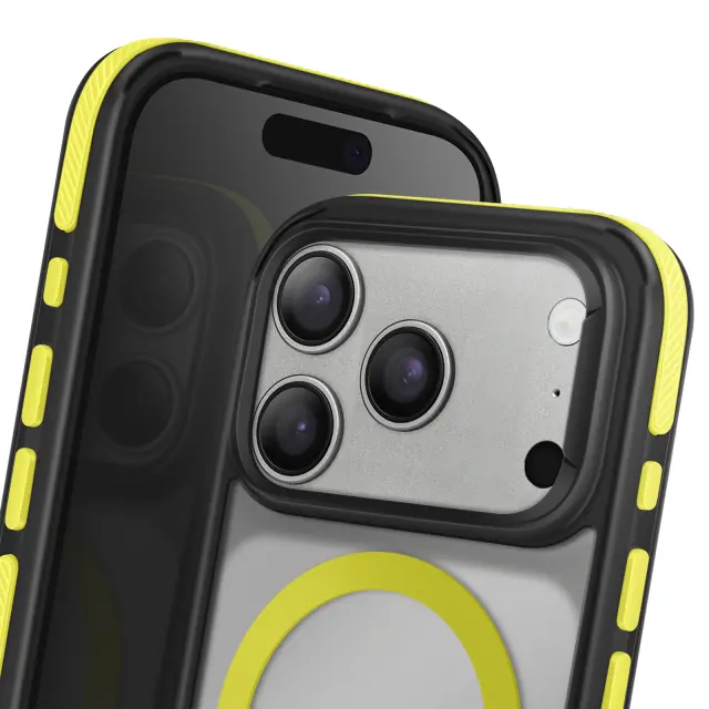 Ojačani vogali s tehnologijo za blaženje udarcev učinkovito ščitijo vaš iPhone 17 Pro v primeru nenamernega padca. Vgrajen magnetni obroč zagotavlja popolno združljivost s polnilniki in dodatki MagSafe za hitro in priročno uporabo. Teksturirani stranski ročaji zagotavljajo trdno in udobno prileganje ter zmanjšujejo tveganje zdrsa med vsakodnevno uporabo.. Polprosojna trda hrbtna stran z matiranim zaključkom proti praskam, ki združuje sodoben slog in dolgotrajno odpornost proti praskam..