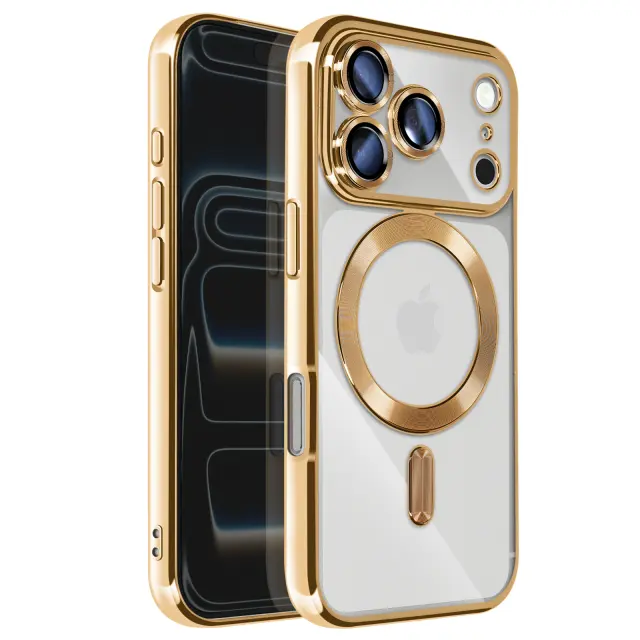 Ovitek za iPhone 17 Pro, združljiv z MagSafe, s kromiranim robom, Zlata