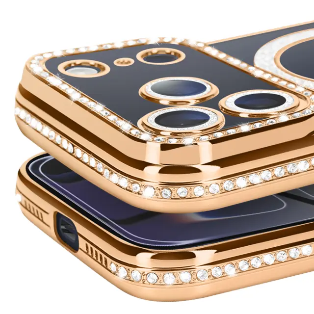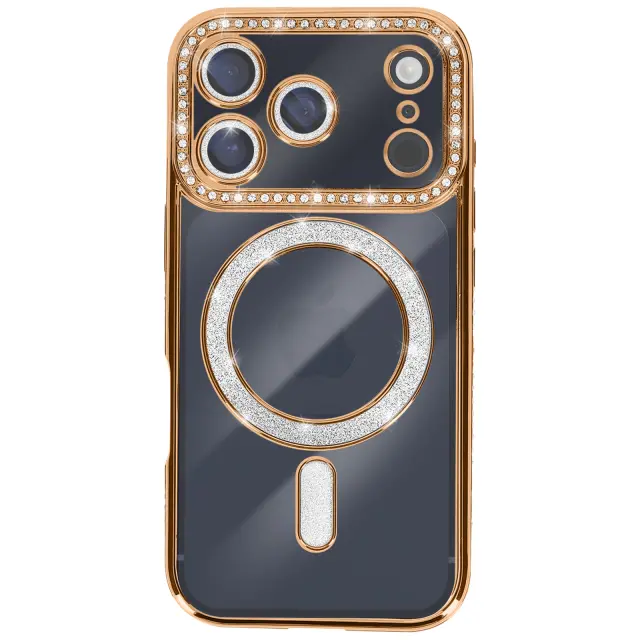 Ovitek za iPhone 17 Pro, združljiv z MagSafe, z okrasnim obrisom iz strasa, Zlata