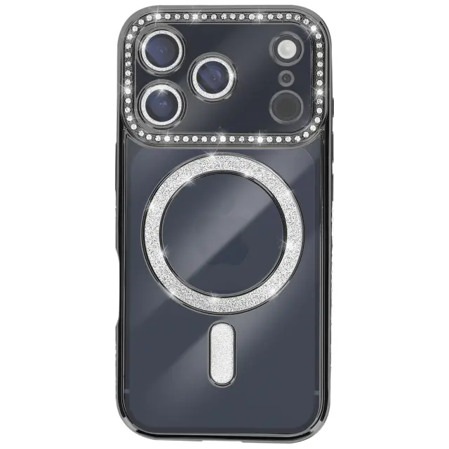 Ovitek za iPhone 17 Pro, združljiv z MagSafe, z okrasnim obrisom iz strasa, Črna