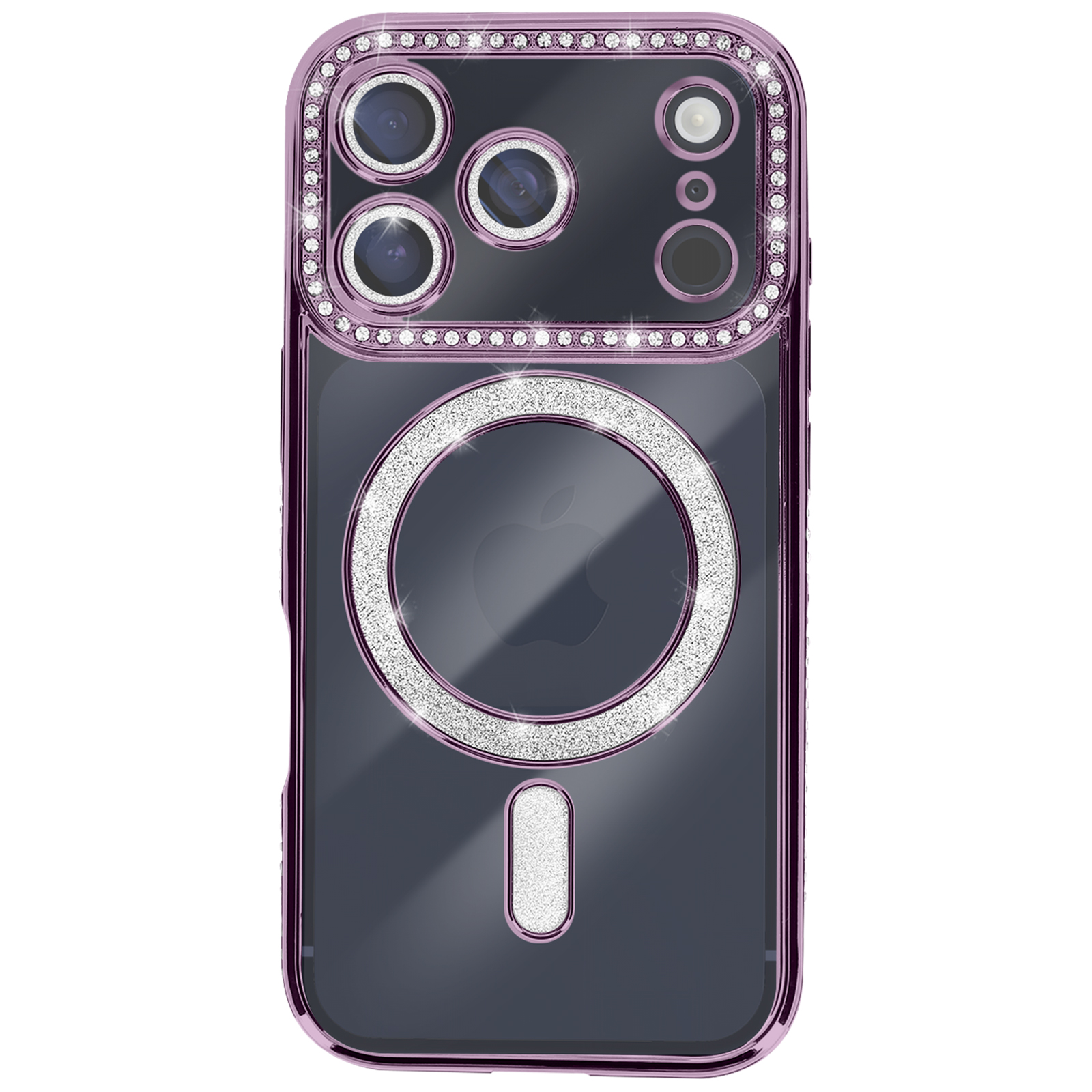 Ovitek za iPhone 17 Pro, združljiv z MagSafe, z okrasnim obrisom iz strasa, Vijolična