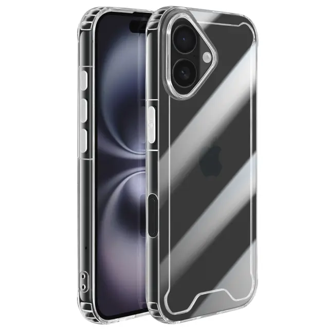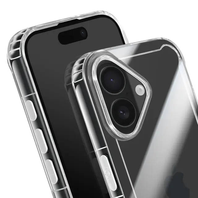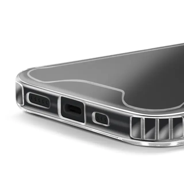 Ojačani vogali za največjo zaščito pred udarci. Trdna polikarbonatna hrbtna stran za zaščito pred praskami. Mehka silikonska oblika za optimalno absorpcijo udarcev. Prozorna zasnova, ki izboljša estetiko telefona iPhone 17.