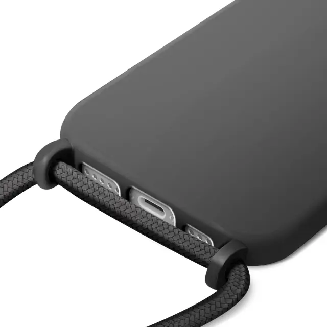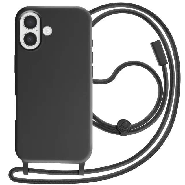 Ovitek za iPhone 17 silikonski Soft Touch z nastavljivo vrvico za okoli vratu, Črna