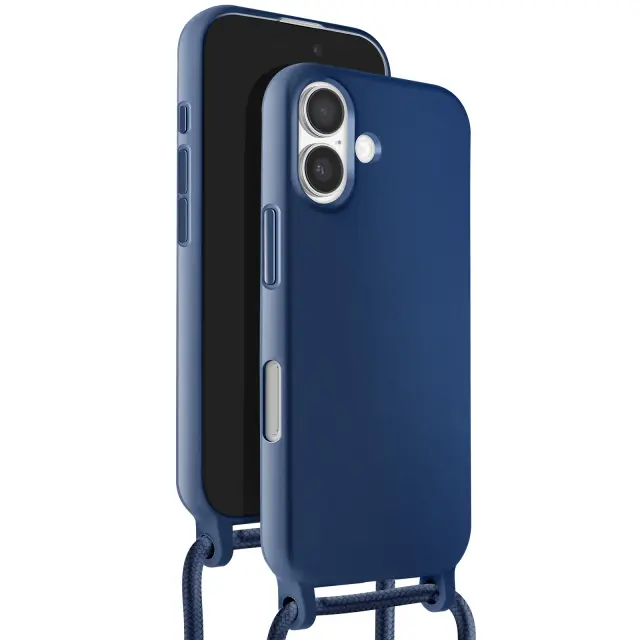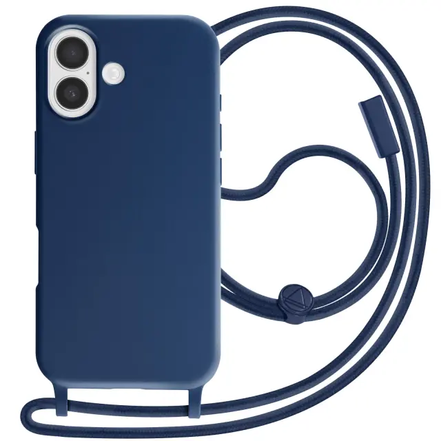 Ovitek za iPhone 17 silikonski Soft Touch z nastavljivo vrvico za okoli vratu, Modra