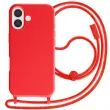 Ovitek za iPhone 17 silikonski Soft Touch z nastavljivo vrvico za okoli vratu, Rdeča