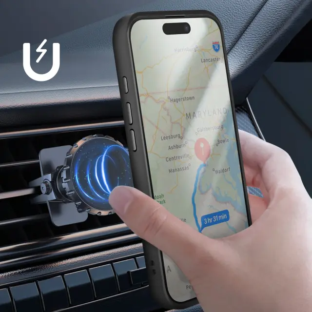 Ohišje je ojačano na vseh štirih vogalih, da bolje absorbira udarce v primeru nenamernega padca.. 360° vrtljiv obroč omogoča uporabo telefona v video ali navigacijskem načinu brez dodatnega stojala. Vključuje magnetno ploščo, ki je združljiva z nosilci za avto, ne da bi potrebovali dodatno opremo. Matirana površina je odporna na praske, prstne odtise in madeže, hkrati pa ohranja eleganten slog..