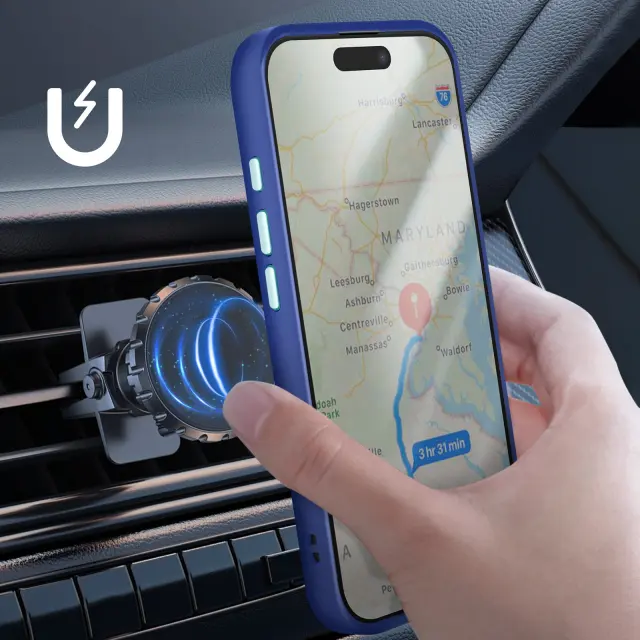 Ohišje je ojačano na vseh štirih vogalih, da bolje absorbira udarce v primeru nenamernega padca.. 360° vrtljiv obroč omogoča uporabo telefona v video ali navigacijskem načinu brez dodatnega stojala. Vključuje magnetno ploščo, ki je združljiva z nosilci za avto, ne da bi potrebovali dodatno opremo. Matirana površina je odporna na praske, prstne odtise in madeže, hkrati pa ohranja eleganten slog..