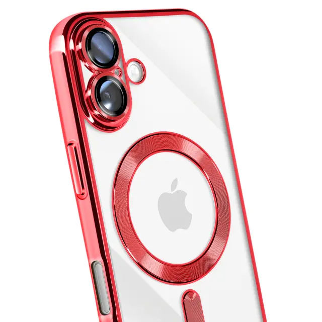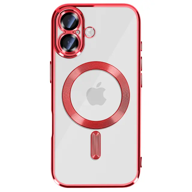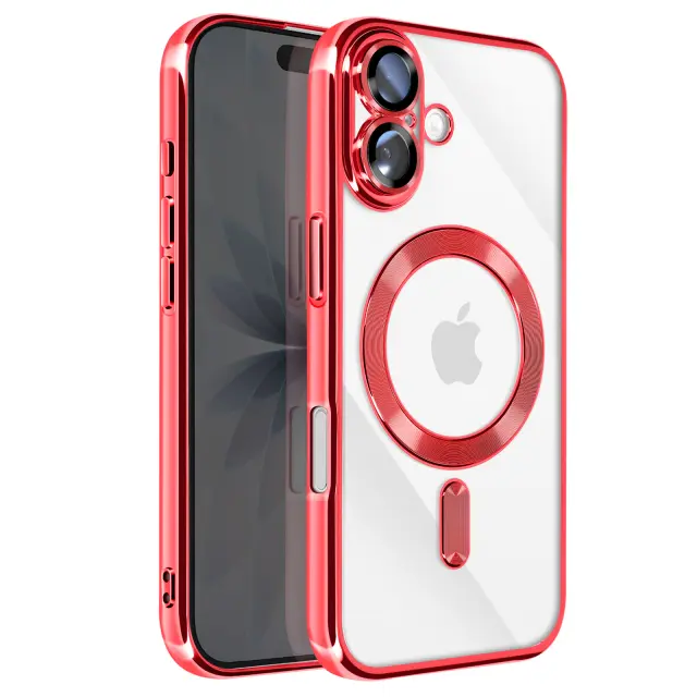 Ovitek za iPhone 17, združljiv z MagSafe, s kromiranim robom, Rdeča