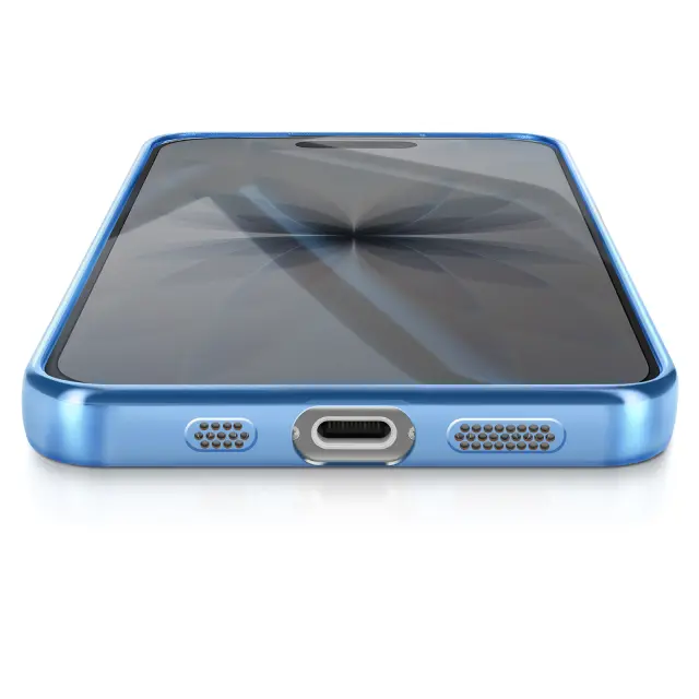 Združljiv z MagSafe z vgrajenim magnetnim obročem. Zanesljiva zaščita pred praskami, udarci in manjšimi padci. Elegantna kromirana obdaja za sodoben, vrhunski zaključek. Prozorna lupina, ki poudarja izvirno zasnovo pametnega telefona.