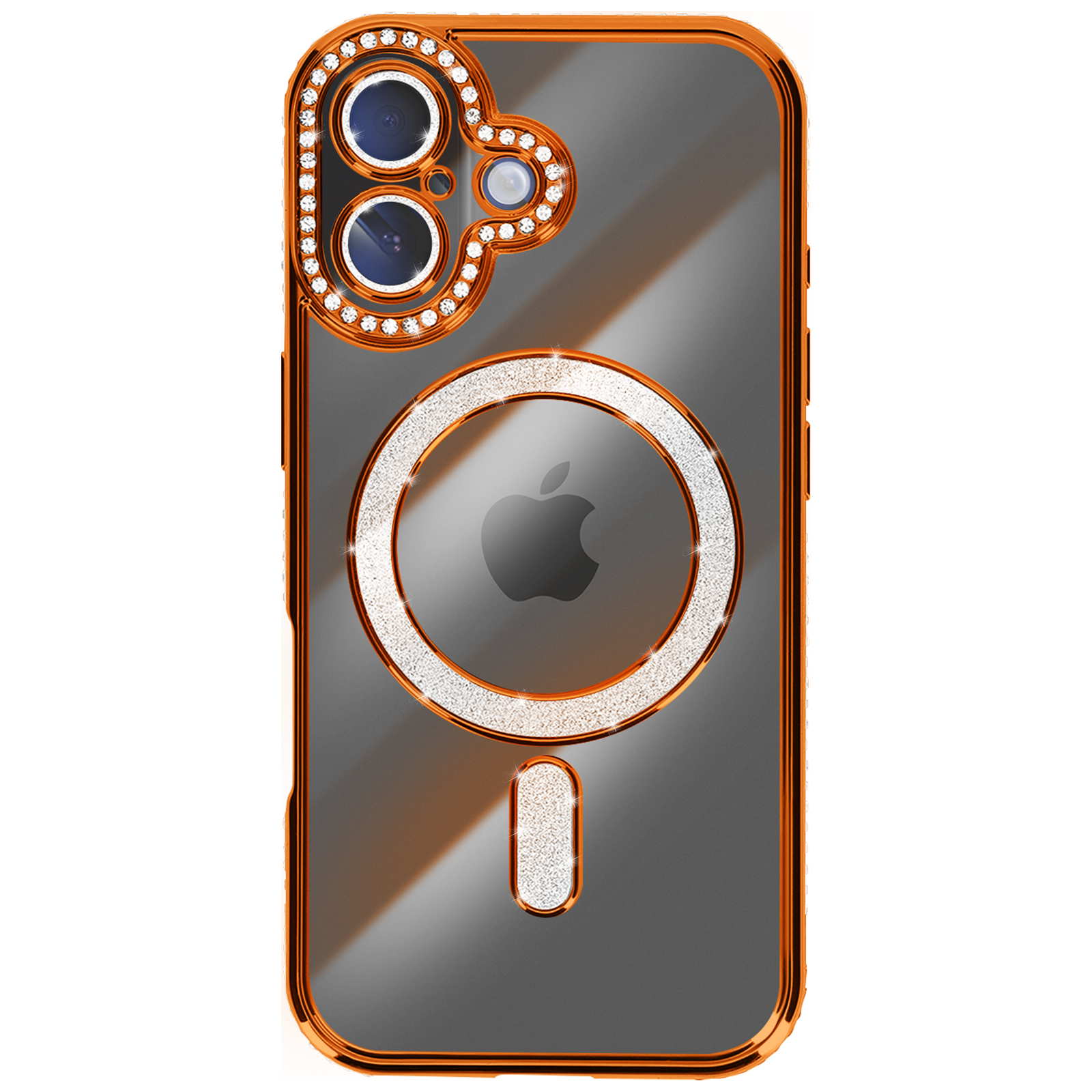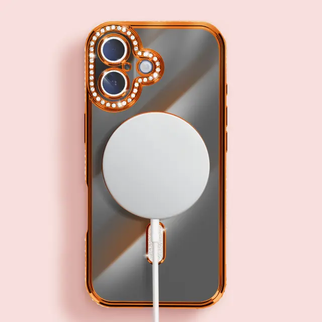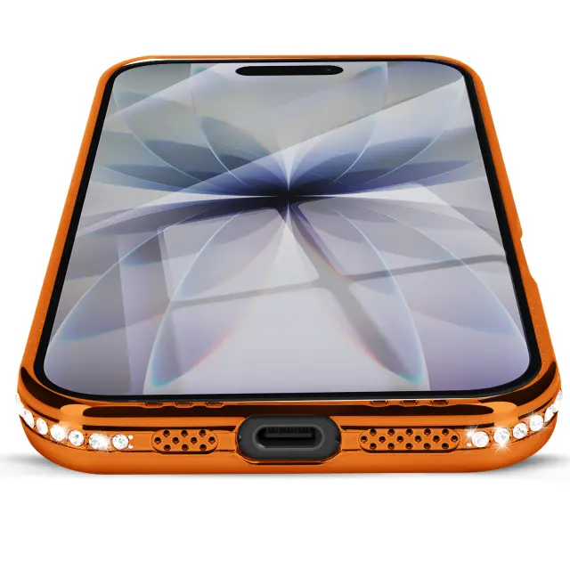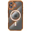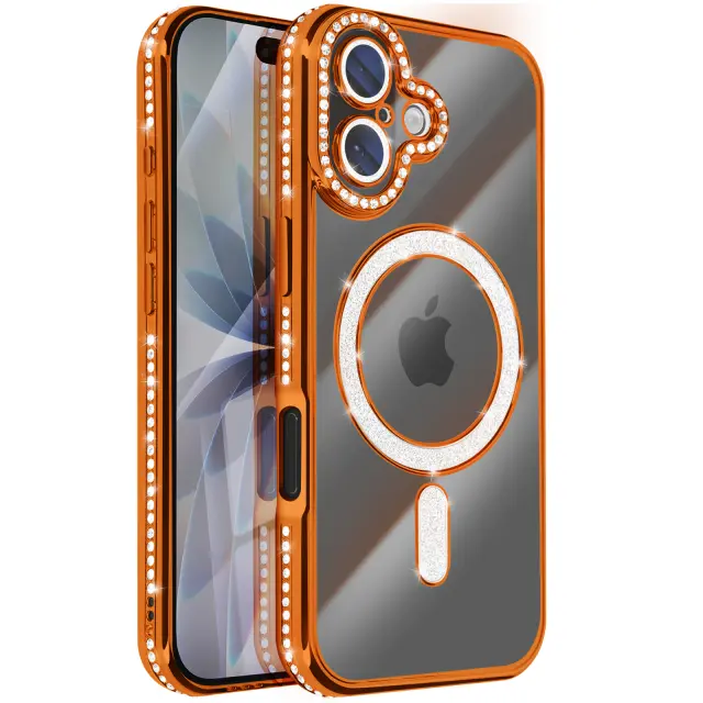 Ovitek za iPhone 17, združljiv z MagSafe, z okrasnim obodom iz kristalov, Oranžna