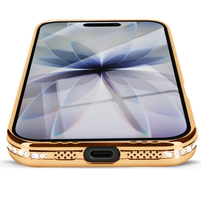 Prefinjen rob s kristalčki za elegantno, sijočo lupino. Združljivost s sistemom MagSafe zaradi vgrajenega magnetnega obroča. Zanesljiva zaščita pred praskami, udarci in manjšimi padci. Ojačan blok kamere za optimalno zaščito objektiva.