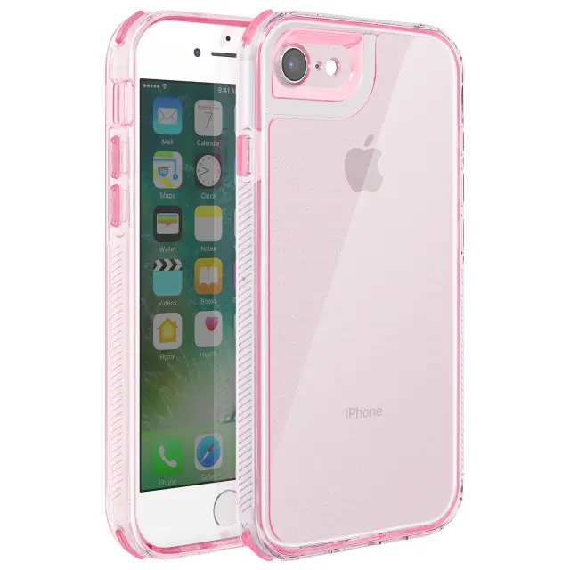 Ovitek za iPhone 7 / 8 / SE 2022, dvomaterialna zasnova, teksturiran, nedrseč, Roza