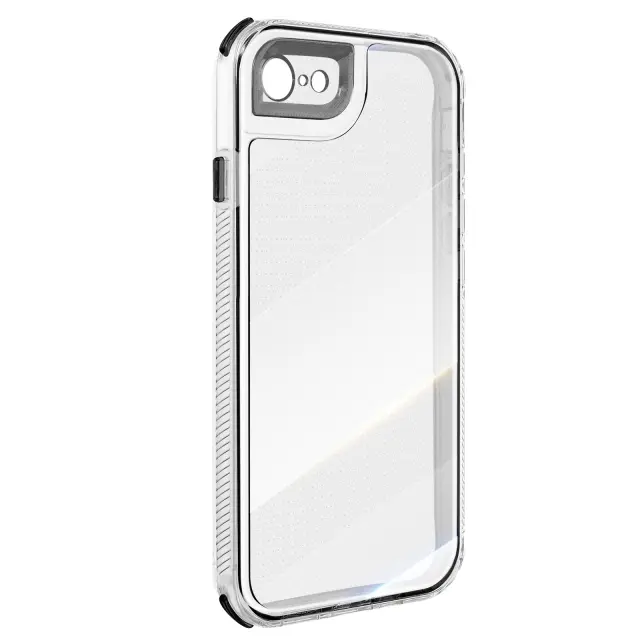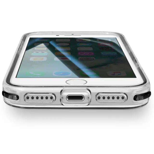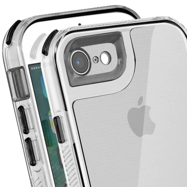 Struktura iz dveh materialov, mehkega silikona in togega polikarbonata, za trajno zaščito pred udarci in praskami. Ojačani vogali so posebej zasnovani tako, da absorbirajo udarce in zmanjšajo tveganje v primeru padca.. Teksturirane nedrseče oblike za varen in udoben oprijem pri vsakodnevni uporabi. Dvignjeni robovi za zaščito zaslona in kamere.