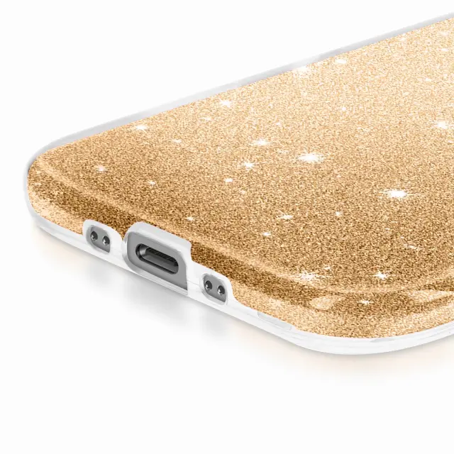 Bi-materialna struktura, ki združuje zunanjo togost in notranjo prožnost za učinkovito blaženje udarcev. Zlati sijajni zaključek za eleganten in stilski videz. Dvignjeni robovi okoli zaslona in leč za dodatno vsakodnevno zaščito. Izjemno natančni izrezi in odzivni gumbi za gladko in udobno upravljanje.