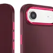 Poltrdna silikonska in polikarbonatna struktura odlično absorbira udarce, hkrati pa ohranja tanko in elegantno obliko.. Dvignjena obdaja kamere s kovinskim zaključkom, ki učinkovito ščiti objektiv pred praskami in hkrati dodaja dizajnerski pridih.. Sijajni stranski gumbi s kovinskim učinkom, odzivni in prijetni na dotik za vsakodnevno udobje. Mat bordo barva, ki ji kontrastirajo elementi sijaja, za trezen, sodoben in vrhunski videz..