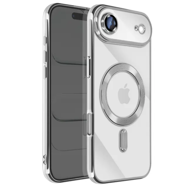 Združljiv z MagSafe z vgrajenim magnetnim obročem. Zanesljiva zaščita pred praskami, udarci in manjšimi padci. Elegantna kromirana obdaja za sodoben, vrhunski zaključek. Prozorna lupina, ki poudarja izvirno zasnovo pametnega telefona.