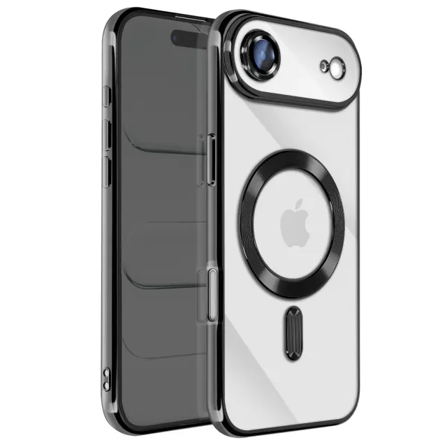 Ovitek za iPhone Air, združljiv z MagSafe, s kromiranim robom, Črna