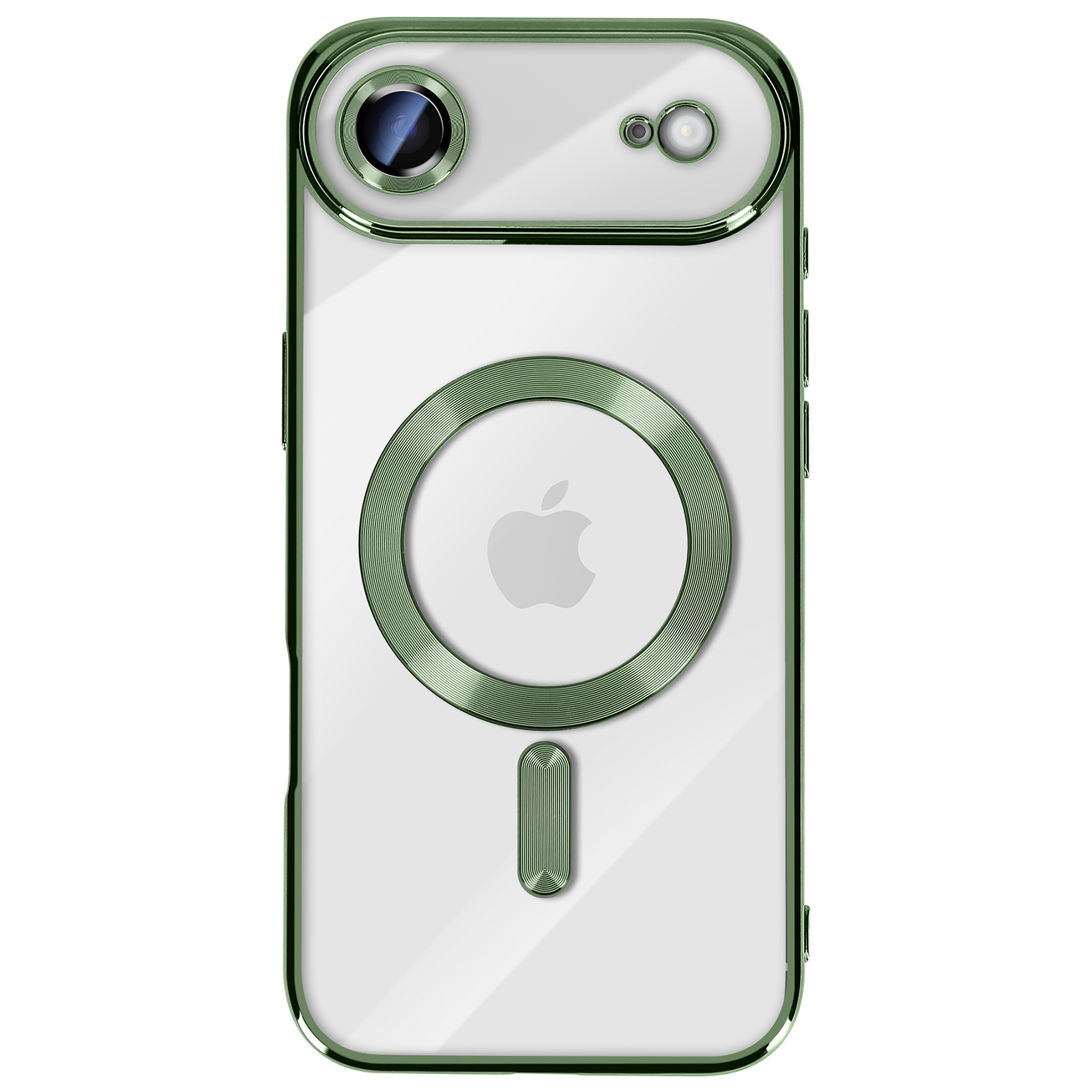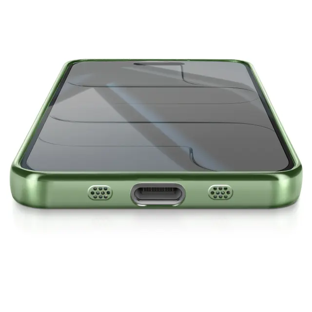 Združljiv z MagSafe z vgrajenim magnetnim obročem. Zanesljiva zaščita pred praskami, udarci in manjšimi padci. Elegantna kromirana obdaja za sodoben, vrhunski zaključek. Prozorna lupina, ki poudarja izvirno zasnovo pametnega telefona.