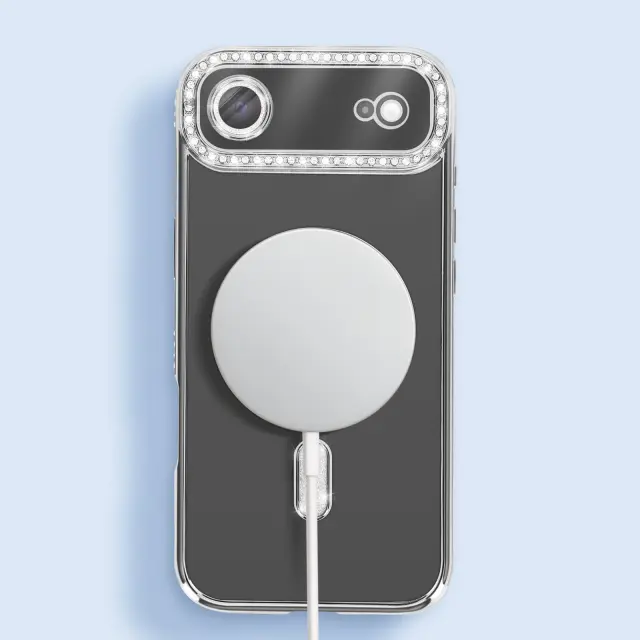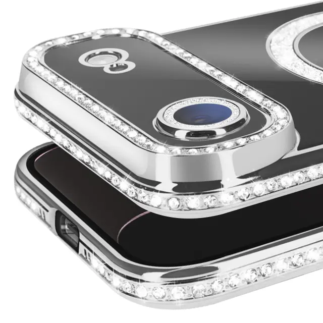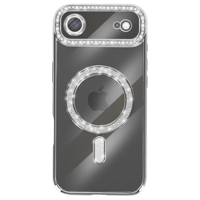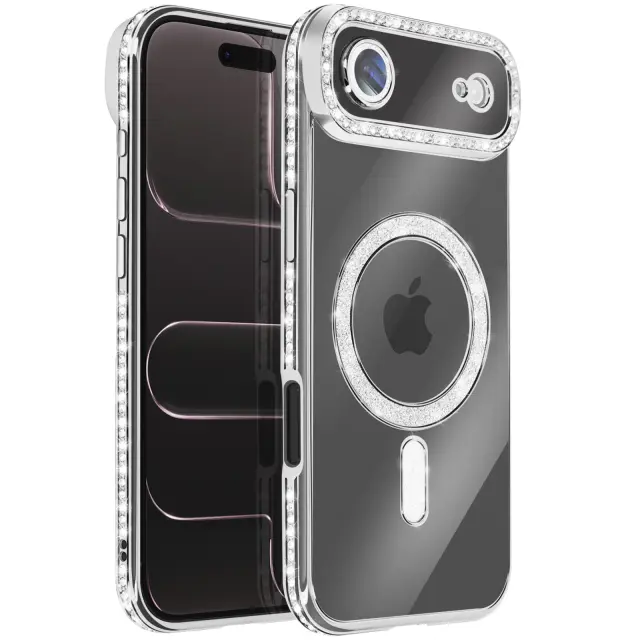 Ovitek za iPhone Air, združljiv z MagSafe, z okrasnim obodom iz strasa, Srebrna