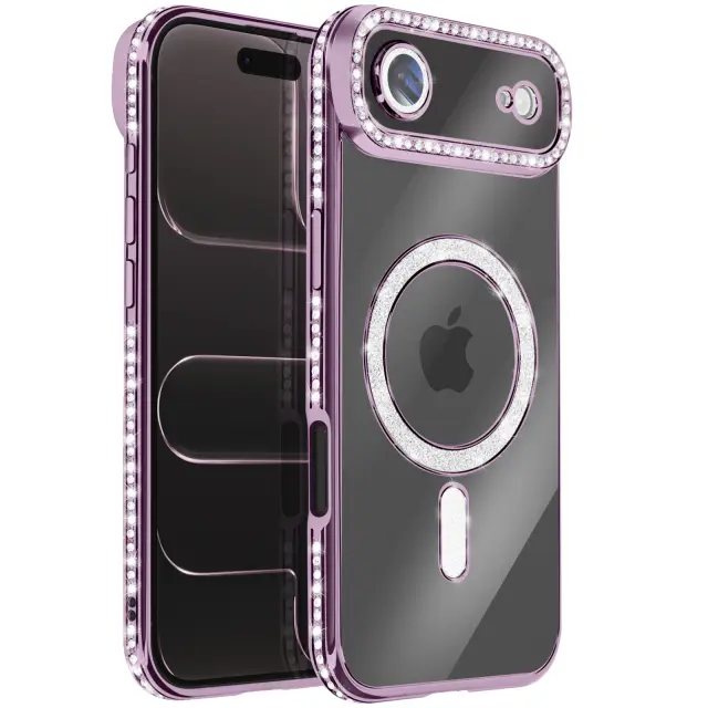 Ovitek za iPhone Air, združljiv z MagSafe, z okrasnim obodom iz strasa, Vijolična