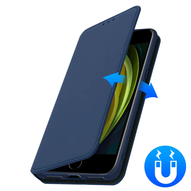 Ovitek za iPhone SE 2022, 2020 in iPhone 8, držalo za kartice 7 in držalo za video, magnetni zavihek - polnocno modra