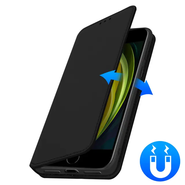 Popoln zaščitni ovitek, izdelan posebej za vaš Apple iPhone 7. Učinkovito ščiti vaš pametni telefon pred vsakodnevnimi udarci in praskami. Izkoristite namensko shrambo, ki je vgrajena v zavihek, da vstavite svoje kartice. Funkcija vodoravnega stojala za udobno uživanje v fotografijah in videoposnetkih.