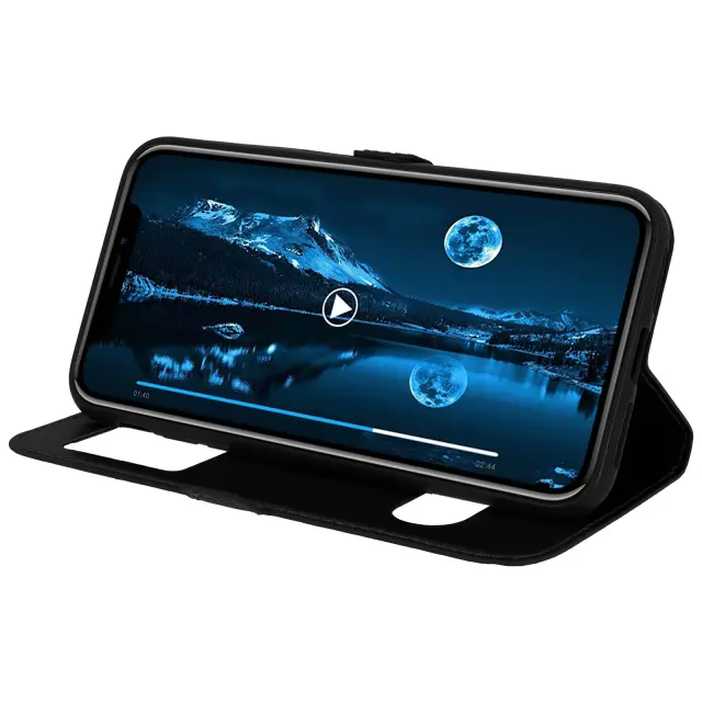 Ovitek za iPhone X/XS z dvojnim oknom, video stojalo, črna