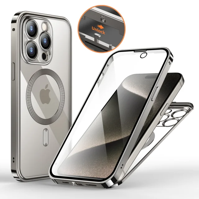 Ovitek za iPhone z zaščito zaslona za serijo iPhone 15 Silver iPhone 15 Plus
