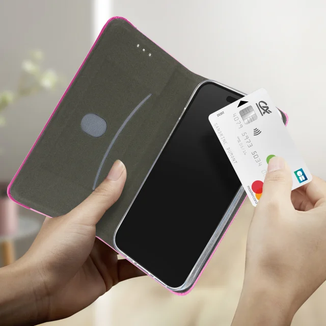 Ovitek za kartice iz blaga za iPhone 14 Pro Max, serija Sensitive - roza