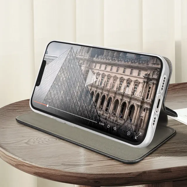 Zaščitna torbica serije Class Book za iPhone 14, ki združuje stil in funkcionalnost. Izstopa zaradi elegantnega dizajna z natančnimi zaključnimi potezami. Izdelan iz polikarbonata s prevleko iz umetnega usnja, ki absorbira vsakodnevne udarce. Shramba za kartice, vgrajena v prevleko.