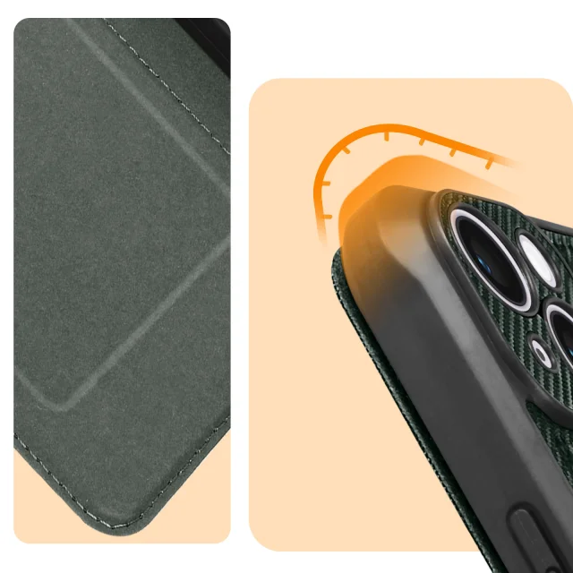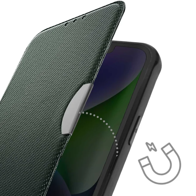 Ovitek za kartice za iPhone 14, odporen proti udarcem, serija Razor Book, temno zelena