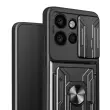 Ovitek za Motorola Edge 50 Neo z zaščito kamere / stojalom / držalom za kartice, Črna