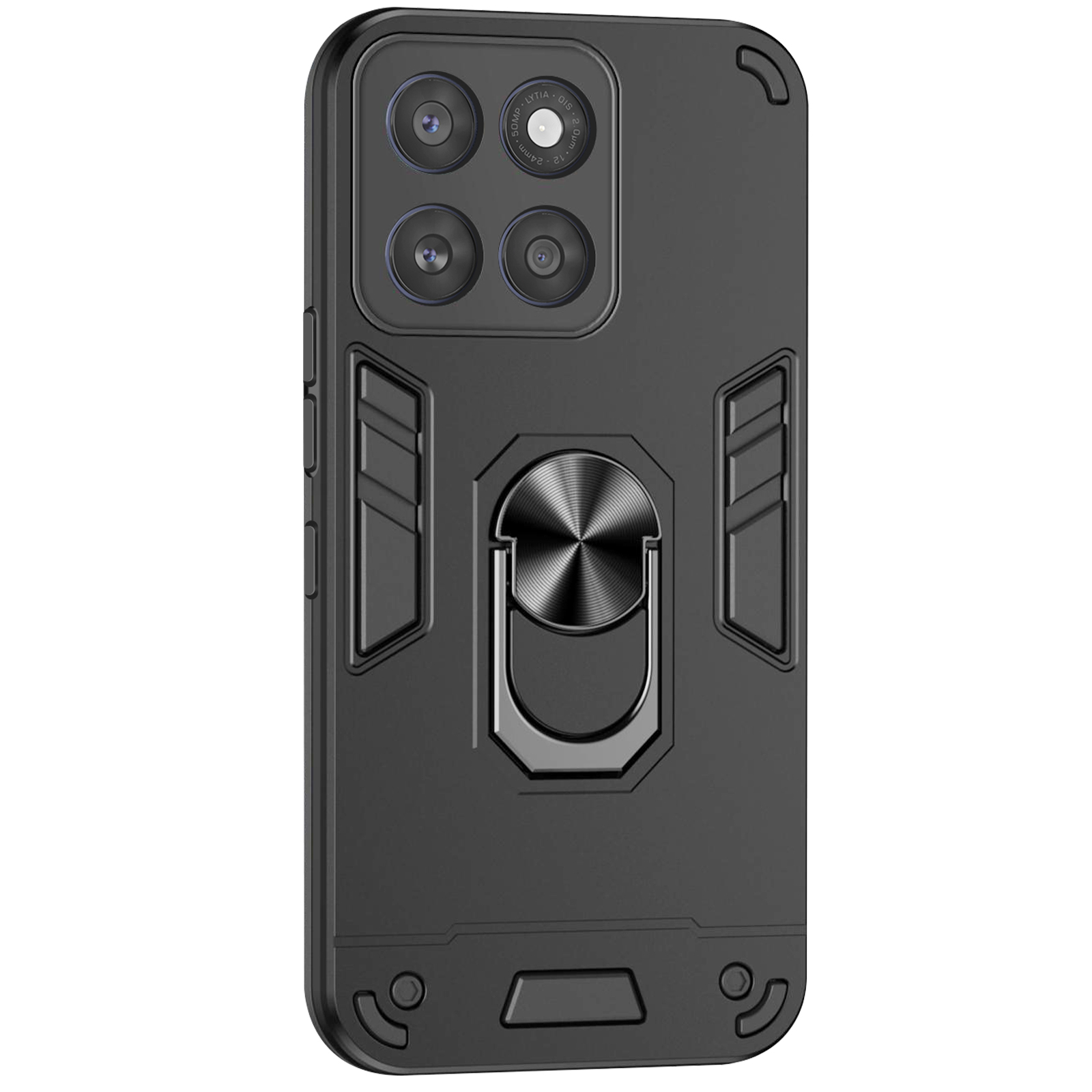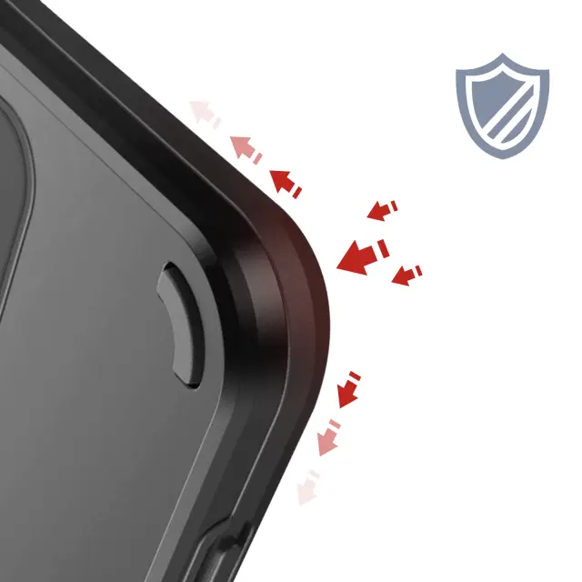 Obroč, ki se vrti za 360°, se spremeni v stojalo za lažje gledanje. Na udarce odporna lupina iz bimateriala za optimalno absorpcijo udarcev. Ojačani vogali za večjo varnost v primeru padca. Teksturiran stranski ročaj za stabilen oprijem.