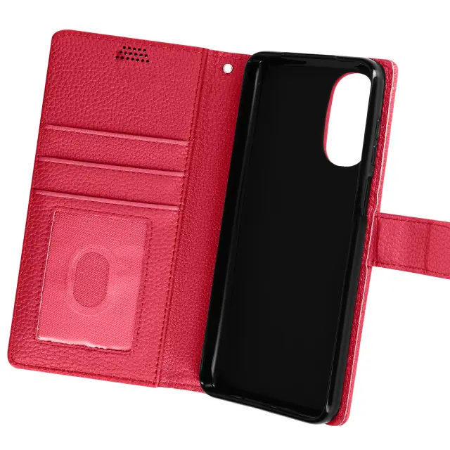 Ovitek za Motorola Moto G52 in G82 s preklopom za denarnico in stojalom za video, magnetnim jezickom in pašckom za zapestje - fuksija