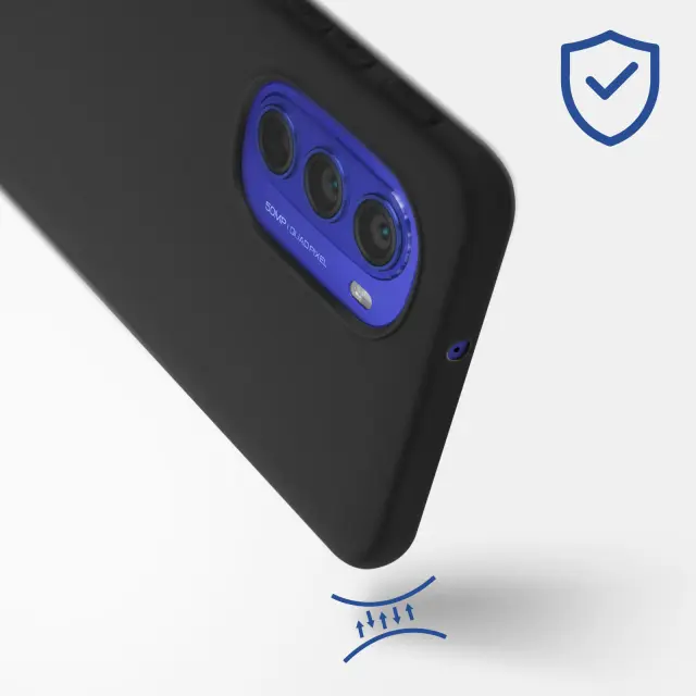 Ovitek Motorola Moto G51 5G iz crnega gel silikona. Ta etui šciti vaš pametni telefon pred udarci in praskami. Ima tudi mat zakljucek proti prstnim odtisom. Ponuja boljši oprijem. Funkcije ostanejo dostopne.