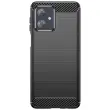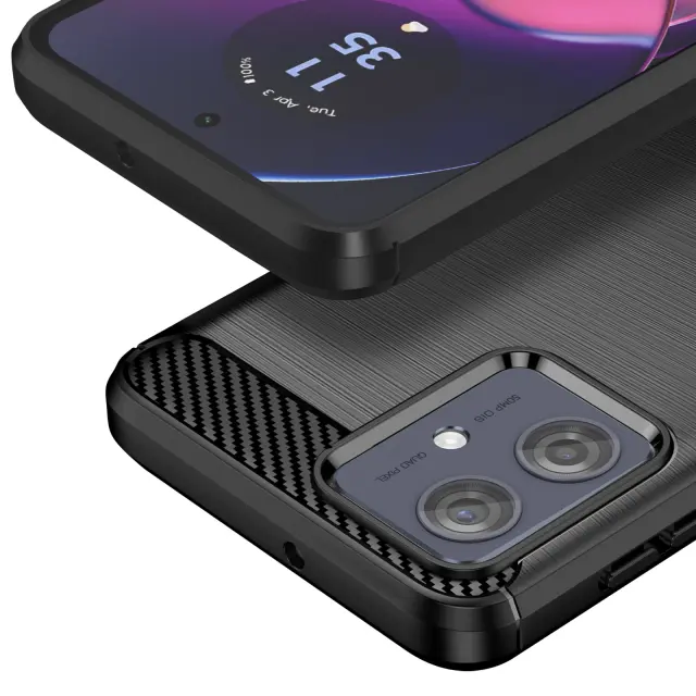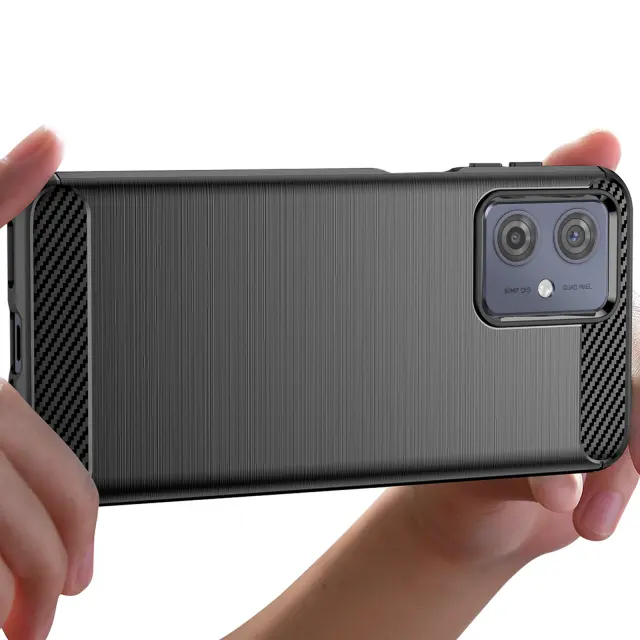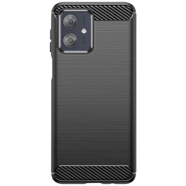 To črno ohišje za Motorolo Moto G54 združuje zasnovo z ogljikovim učinkom in elegantno brušeno teksturo.. Mehka silikonska zasnova absorbira udarce in zagotavlja učinkovito zaščito pred praskami. Dvignjeni robovi varujejo zaslon in fotografsko enoto v primeru padca. Mat zaključek zmanjšuje količino prstnih odtisov in ohranja čist videz..