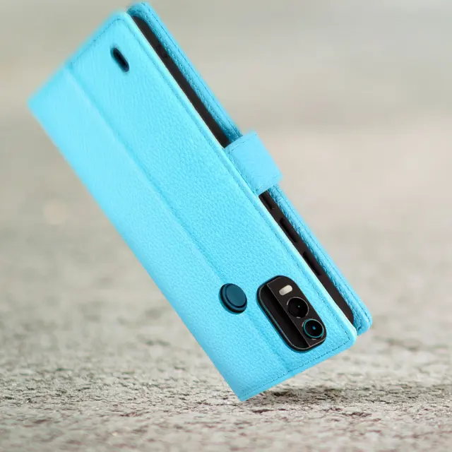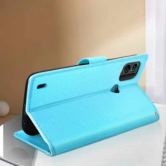 Ovitek za Nokio C21 Plus Video Stand Wallet iz umetnega usnja moder