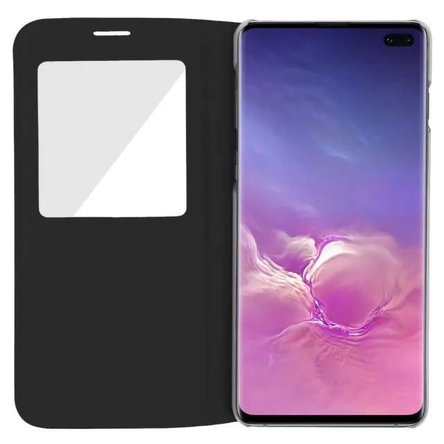 Ovitek z okencem posebej zasnovan za Samsung Galaxy S10 Plus. Transparentno okno zaslona, da ostane zaslon v vidnem polju. Po meri oblikovana zaščitna prevleka iz trdega in odpornega polikarbonata. Neovirana kamera in popolnoma dostopni priključki.