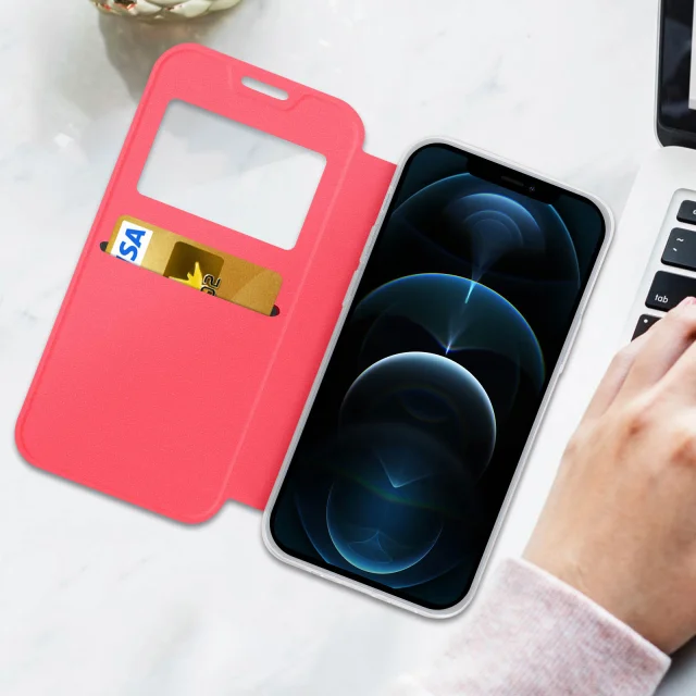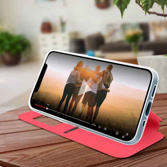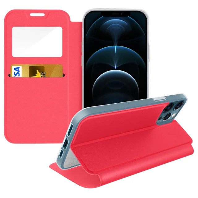 Ovitek za okno Apple iPhone 12 Pro Max z držalom za kartice in stojalom za video - rdec