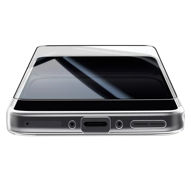 Prozorna mehka silikonska lupina, ki zagotavlja učinkovito zaščito pred udarci in hkrati poudarja izvirno zasnovo pametnega telefona. Dvignjeni robovi okoli zaslona in kamere za dodatno zaščito pred vsakodnevnimi praskami in drgnjenjem. Vključena sta dve visoko odporni kaljeni stekli za zaščito zaslona pred praskami, razpokami in nenamernimi udarci.. Kristalno čista prozornost ohranja estetiko telefona, hkrati pa je tanek in ga ne obremenjuje..