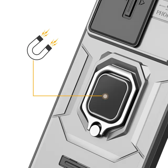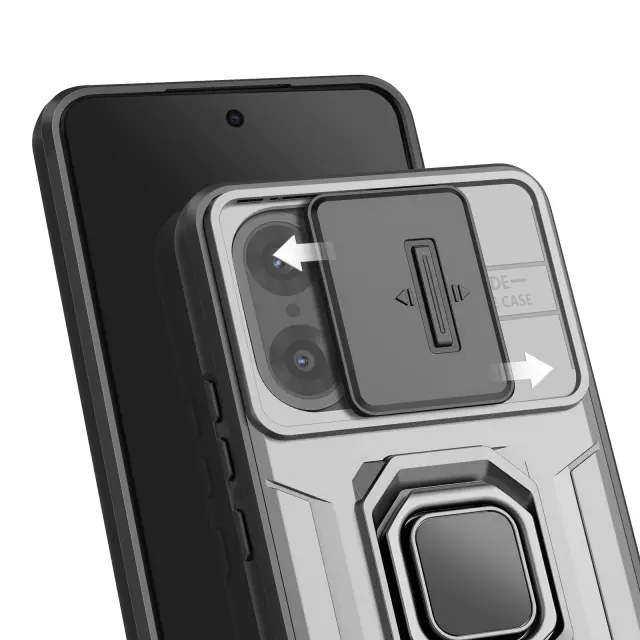 To ohišje ima vgrajen drsni pokrov za učinkovito zaščito objektiva fotoaparata. Hibridna lupina, ki združuje prožen silikon in tog polikarbonat za optimalno zaščito. Obroč, ki se vrti za 360 stopinj, lahko uporabite kot stojalo za udobno gledanje. Robustna zasnova za vsakodnevne udarce in intenzivno uporabo.