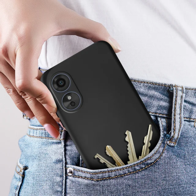 Ovitek za Oppo A17, poltrdi silikon z mehkim zakljuckom na dotik - crn