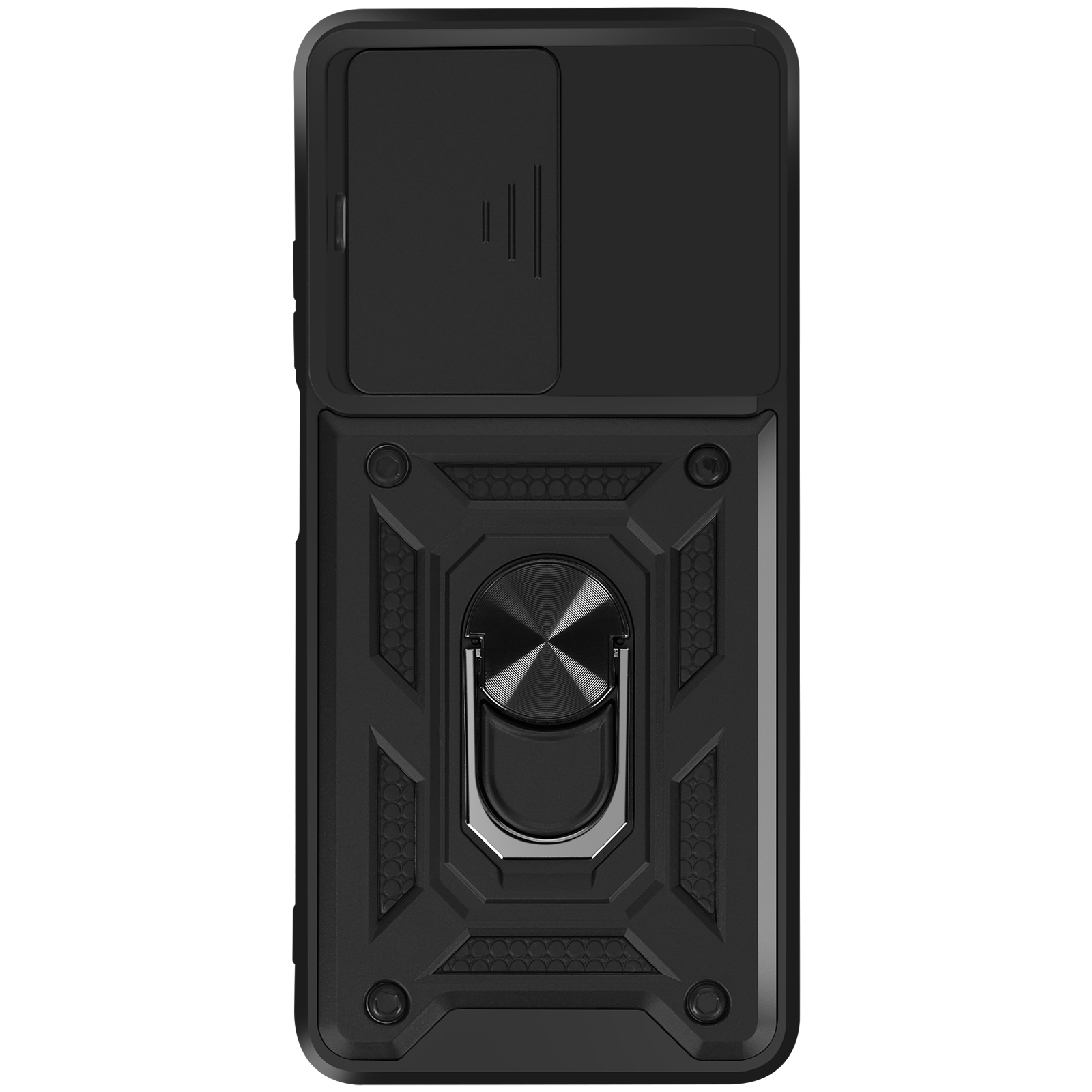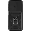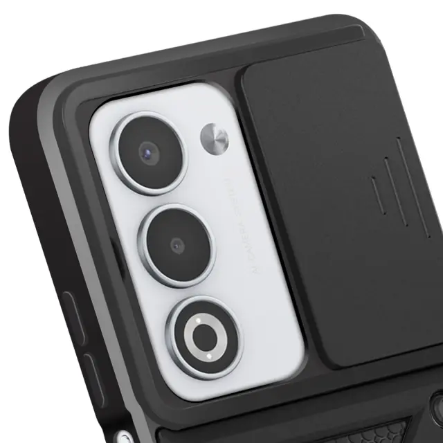 Ovitek za Oppo A5 z obročastim stojalom in drsnim pokrovom kamere, Črna