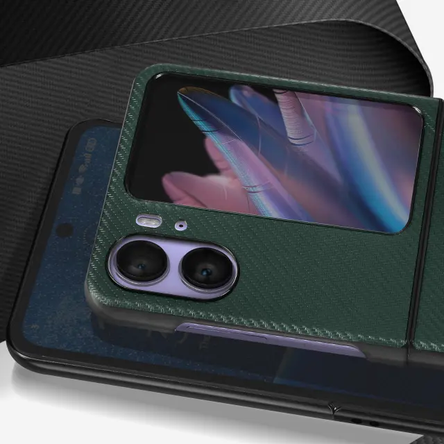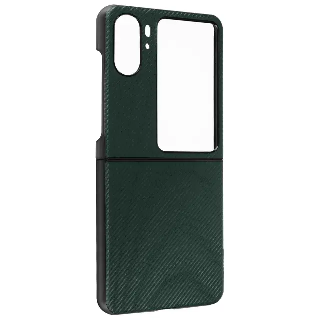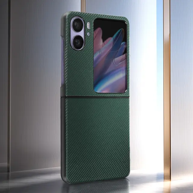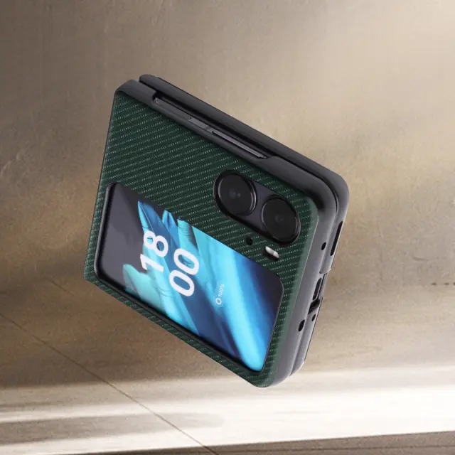 Ovitek za Oppo Find N2 Flip ojacan iz mehkega krtacenega silikona Carbon Green
